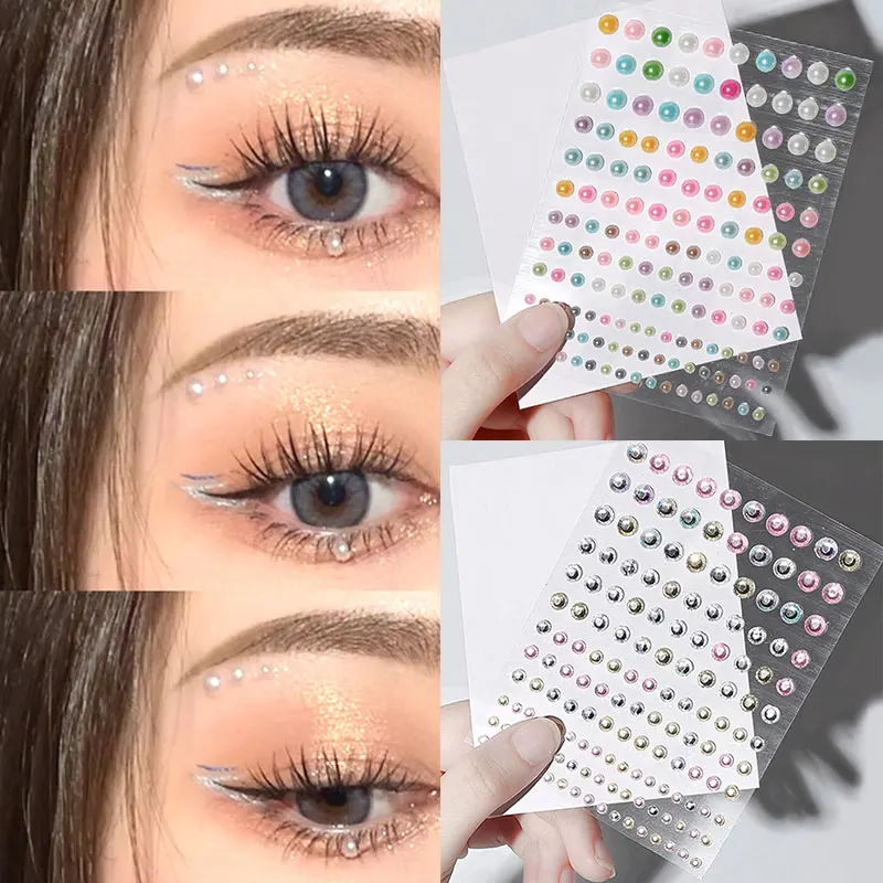 Белый жемчуг Глаза Лицо временная татуировка драгоценные камни точки Красота DIY боди арт аксессуары праздничные украшения 3D Искусственные ногти