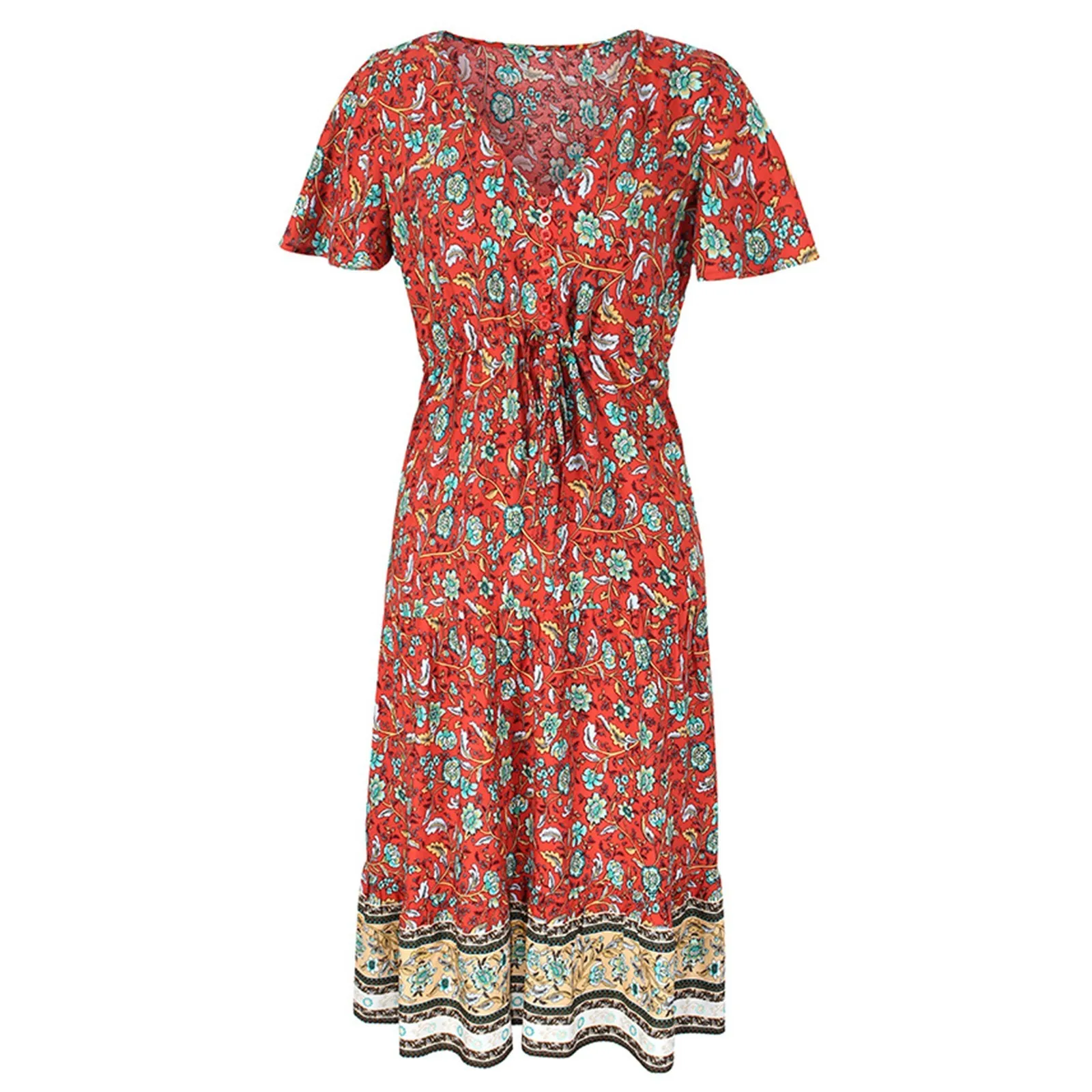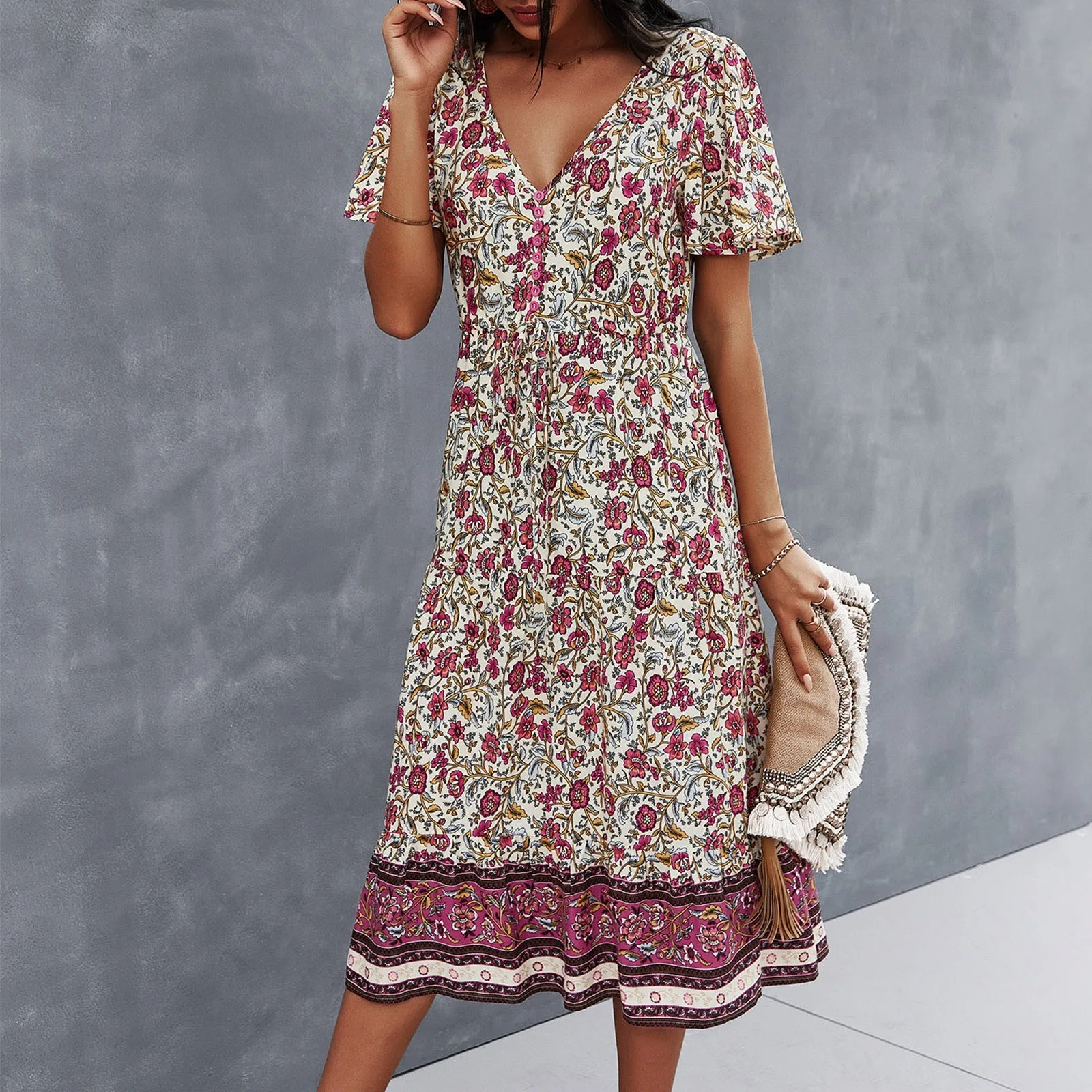 Платья 2021 летнее женское повседневное свободное платье с цветочным принтом ромбовидный V-образный вырез модное пляжное стильное темпераментное платье # T4