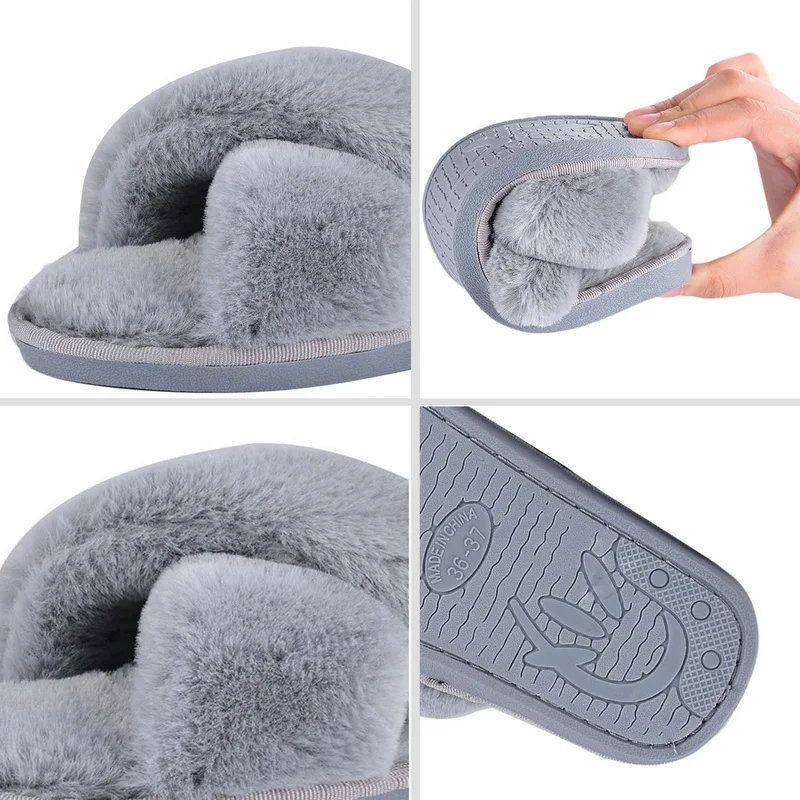 Женские домашние тапочки на плоской подошве, теплые мягкие тапки с мехом, без застежки, розового и серого цветов, для зимы, 2021
