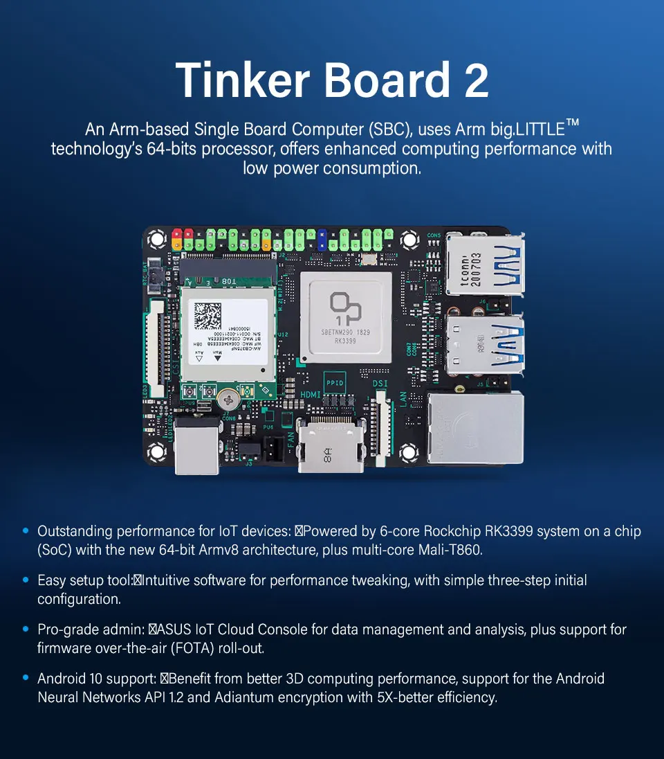 Питание от руки? 6-ядерный система на чипе (SoC), с Новинка 64-разрядный Armv8 архитектура-с двумя камерами, процессор Rockchip RK3399-феей Динь-Динь доска 2 предлагает значительно повысить производительность против по сравнению с другими товарами из популярных SBC доски. Он также оснащен Arm big.LITTLE technology, которая является разнородной архитектурой обработки, которая соединяет два очень разных процессора в одном SoC. Большое. Маленькое программное обеспечение автоматизирует распределение задач, обеспечивая правильное ядро ЦП для каждого процесса. Upshot заключается в том, что Tinker Board 2 обеспечивает почти вдвое больше производительности оригинальной платы Tinker и значительно быстрее, чем многие конкурирующие SBCs.