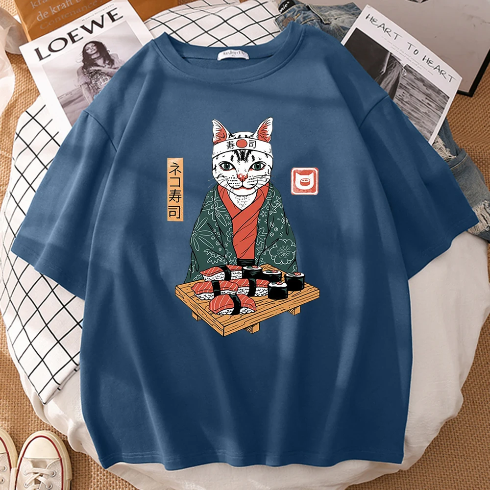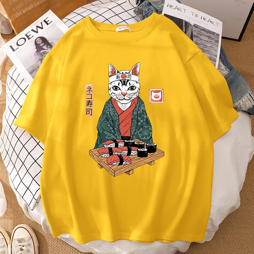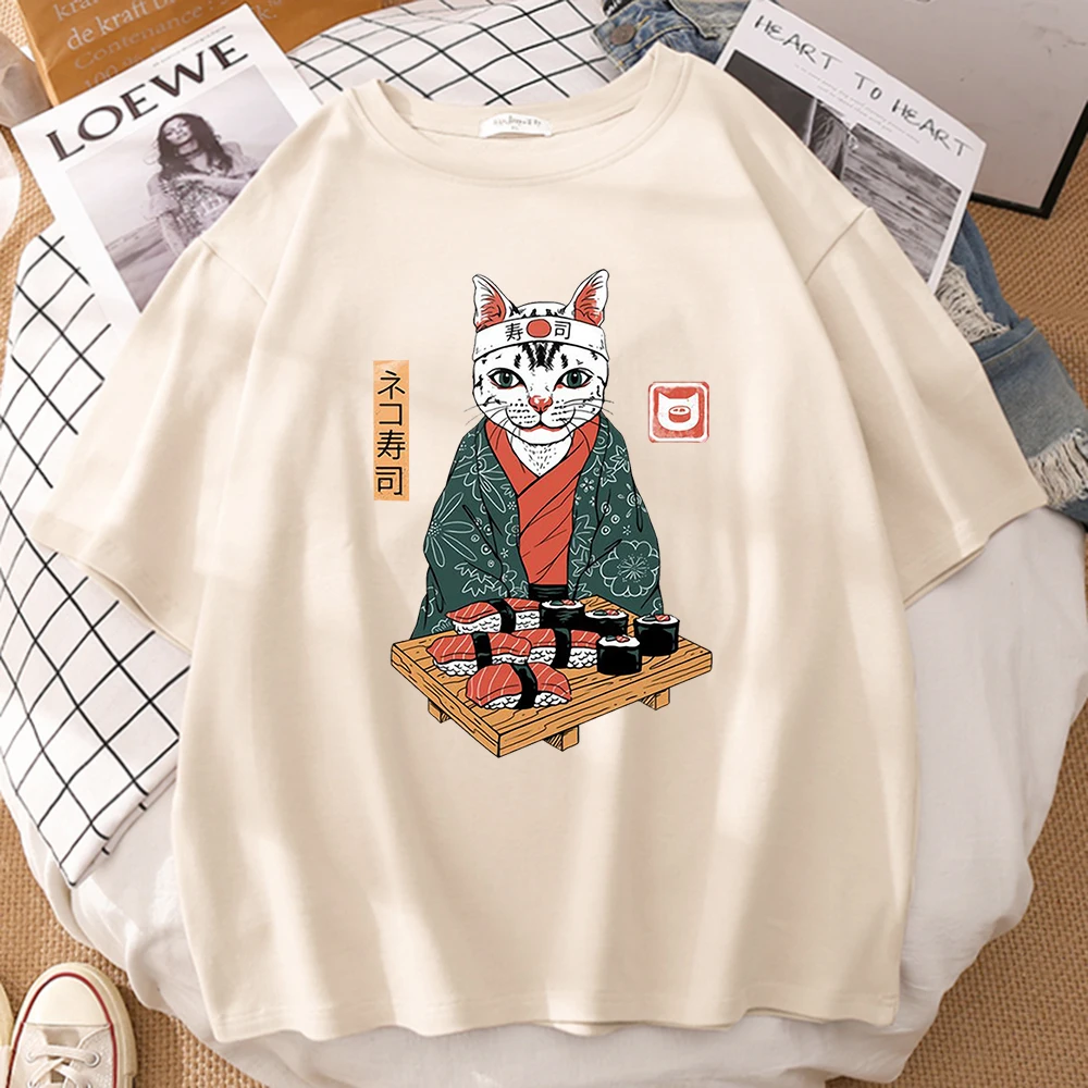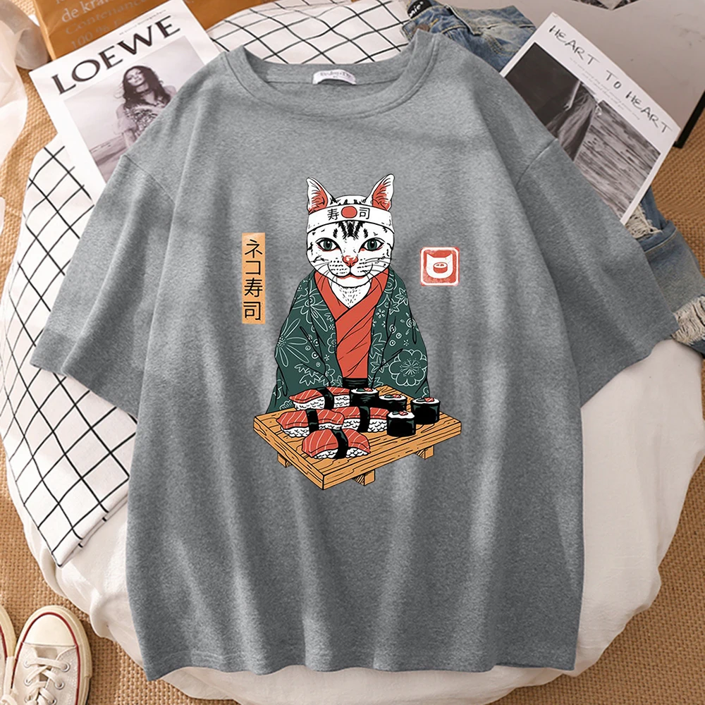 Крутые Японские Женские футболки с принтом кошки Shinobi, дышащая л...