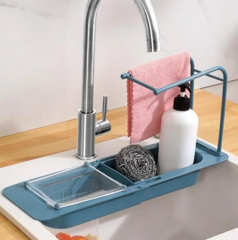 Полка для слива кухонной раковины выдвижная корзина для слива отходов с вращающимся крючком для полотенца полка для раковины кухонные гаджеты аксессуары