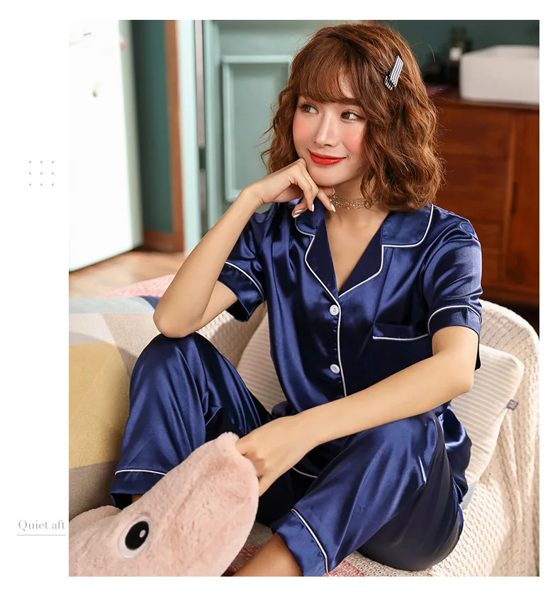 Женский пижамный комплект из 2 предметов, одежда для сна, зимнее белье с длинным рукавом, ночная рубашка, домашняя одежда, Женская шелковая атласная пижама, Пижамный костюм