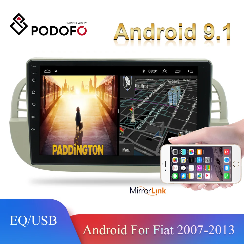 Podofo 2Din Android 9.1 GPS автомобильное радио для Fiat 500 2007 2008 2009 2010 2011 2012 2013 2014 FM Bluetooth Canbus плеер с эквалайзером