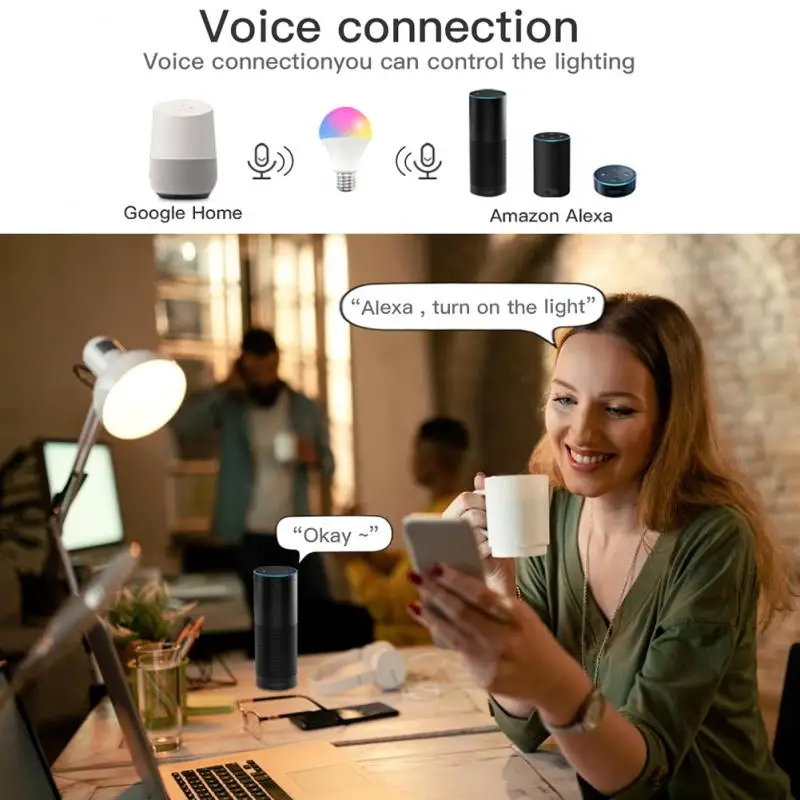 Функция голосового управления:И управляйте этими умными лампами через свой голос с Amazon Alexa, Google Assistant. Просто дайте команду включить/выключить или затемнить/осветить цвет лампы.