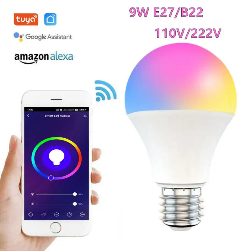 9W WiFi умный светильник лампочка B22 E27 светодиодные лампы работать с AlexaGoogle Home 85-265V RGB + CW затемнения таймер Функция голос Управление светильник