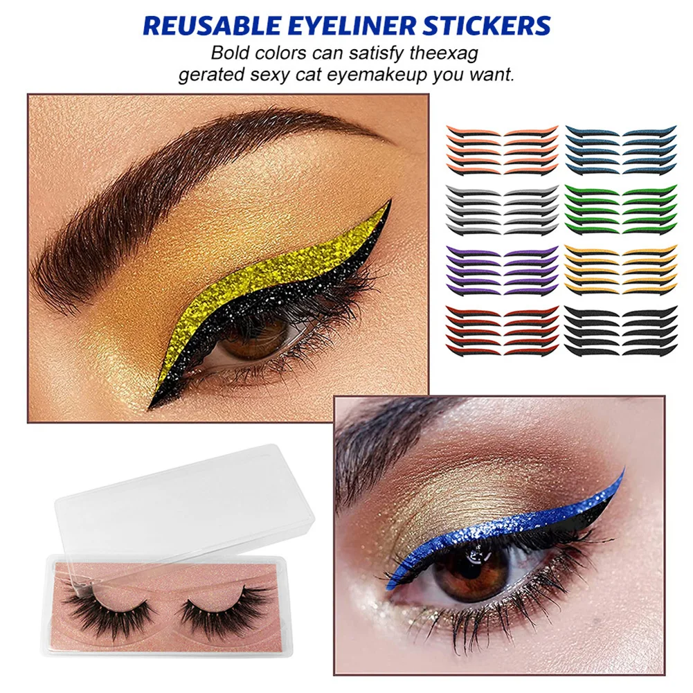 Многоразовые водостойкие наклейки для подводки век с ресницами, кошачий глаз, наклейки для век, макияж глаз для ленивых