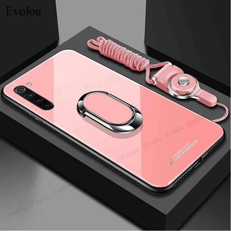 Чехол для Redmi Note 8 2021, мягкая рамка, жесткая задняя крышка из закаленного стекла для Redmi Note 8 Pro 8T, магнитный держатель-подставка, чехол с ремешком