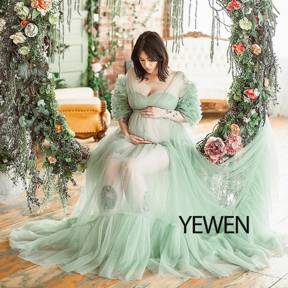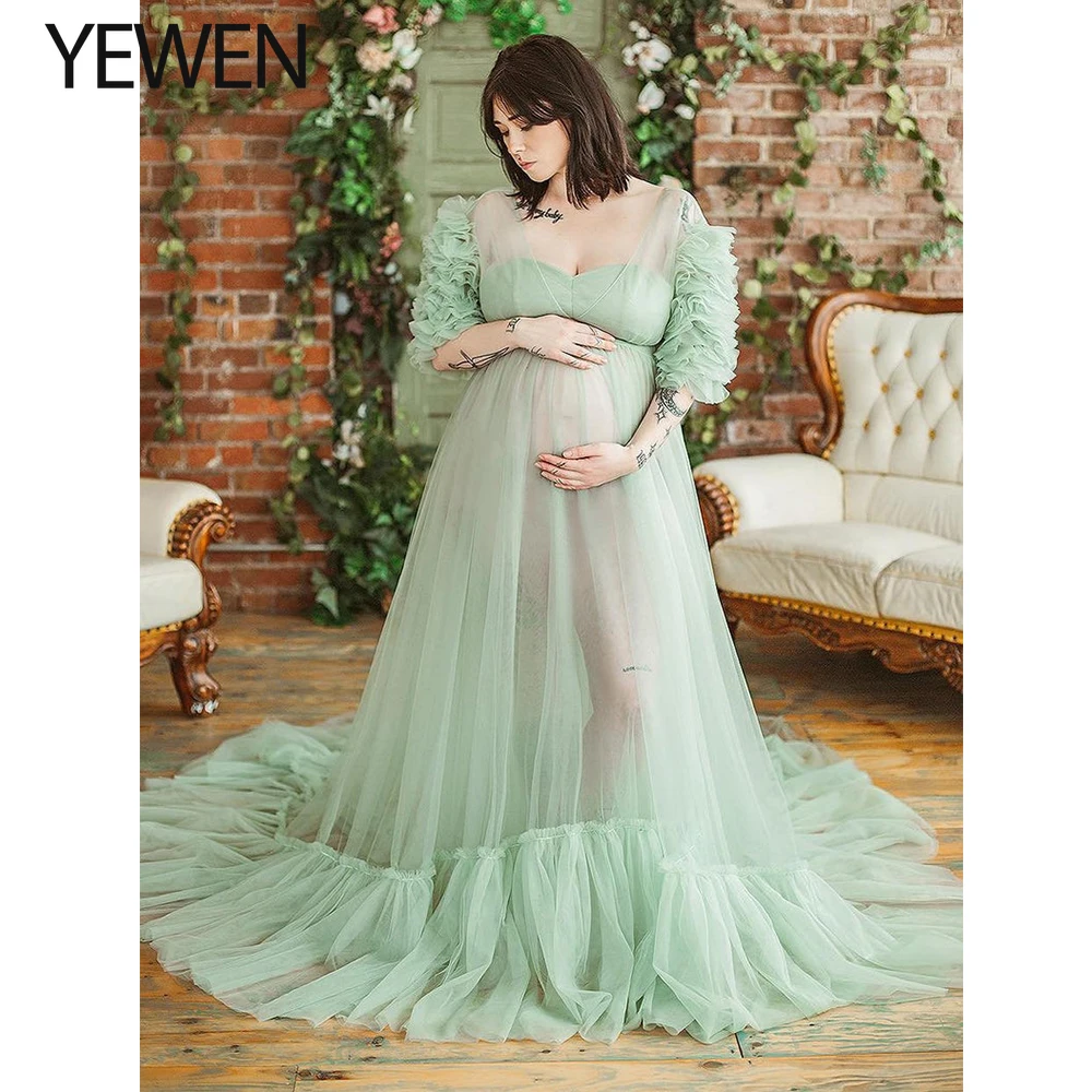 Платье для беременных YEWEN, длинное прозрачное платье с полурукавами, реквизит для фотосъемки, 2021