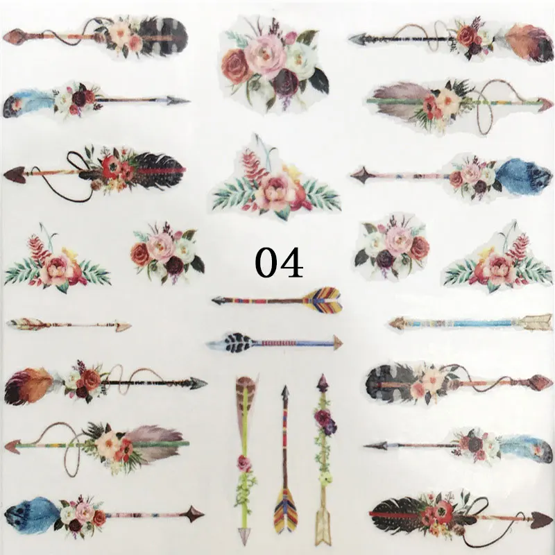 Наклейки для дизайна ногтей с цветами, водные переводные наклейки, Полные Обертывания, Типсы для ногтей с оленемлавандойживотнымилистьями для маникюра