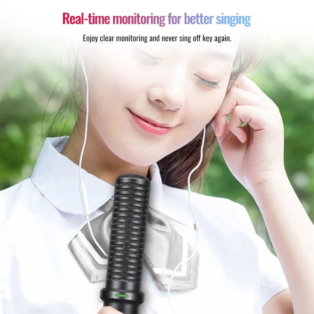 С разъемом для наушников 3,5 мм, поддерживает мониторинг в реальном времени, наслаждайтесь чёткими звуками музыки и больше никогда не запевайте кнопку.