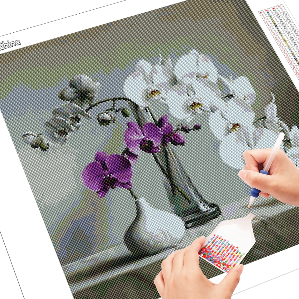 Алмазная вышивка с квадратными цветами и вазой, для домашнего декора