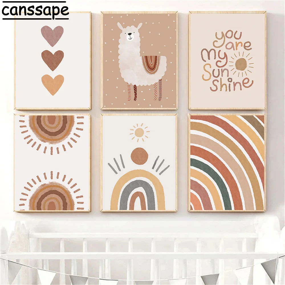 Солнце Радуга Холст плакат постеры с единорогом медведь Альпака принт картины с кактусами Детская Wall Art принты Бохо детской комнаты настенный Декор