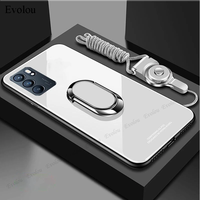 Чехол для OPPO Reno 6 Pro Plus чехол из закаленного стекла для телефона для oppo reno 6 pro Магнитная подставка мягкая рамка чехол Lanyard Couqe