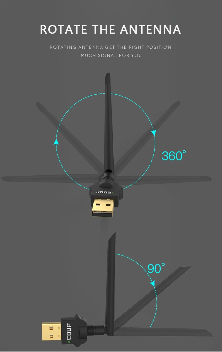 Wi-Fi USB-адаптер EDUP, 600 Мбитс, 5 ГГц, антенна 6 дБи, 802.11bngac