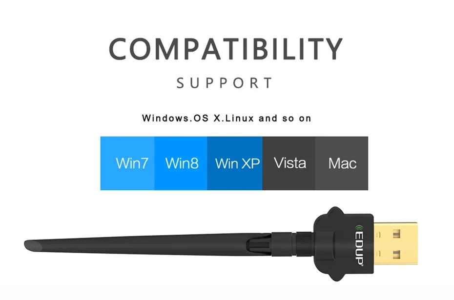 Характеристики:Чипсет RTL8812BUСтандарт IEEE802.11 a/b/g/n/acАнтенна с высоким коэффициентом усиления 2DbiЧастота 2,4 ГГц/5 ГГцСкорость передачи данных до 2,4 ГГц до 400 Мбит/с и 5 ГГц до 867 Мбит/сПоддержка мягкого APУправление система: windows XP / Vista / 7/8/10, MAC OS X 10.13.4 /10.13.3 /10.13.2 /10.13.1/10,12. Х/10,11. Х/10,10. Х/10,09. XПосылка:1*1300 Мбит/с беспроводной адаптер1 * CD драйвер1 * Руководство пользователя на английском языкеКак использовать:Во-первых, поместите компакт-диск драйвера в CD-ROM компьютераВо-вторых, установите программу драйвераВ-третьих, подключите адаптер wifi к компьютеру, затем адаптер wifi может работать