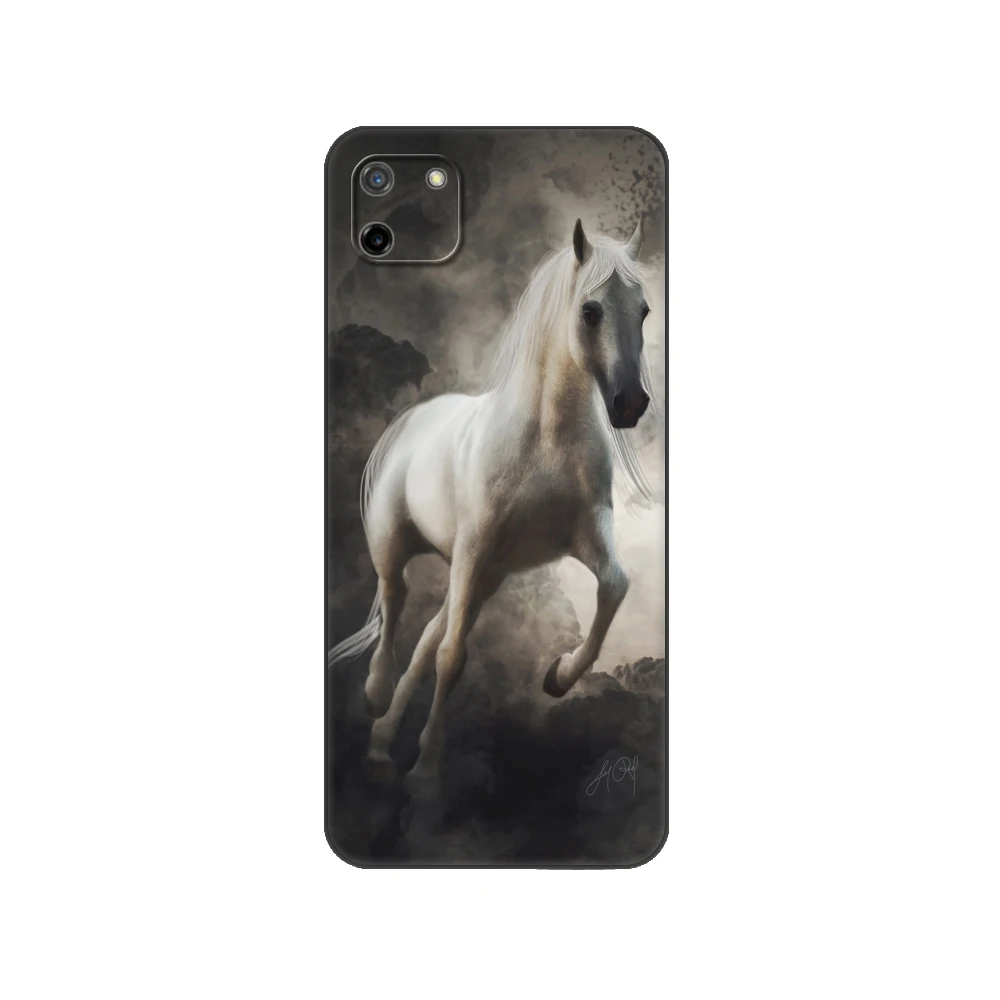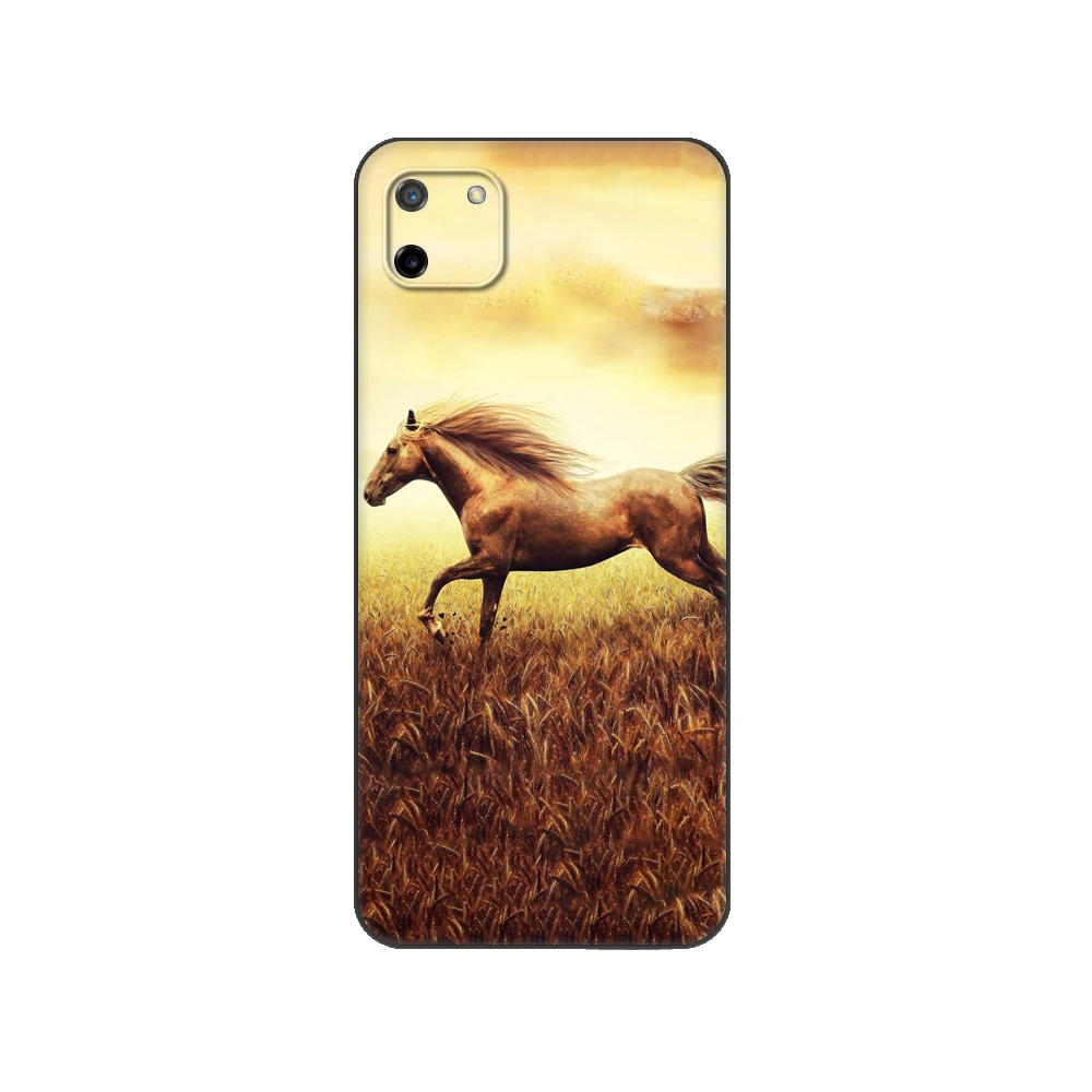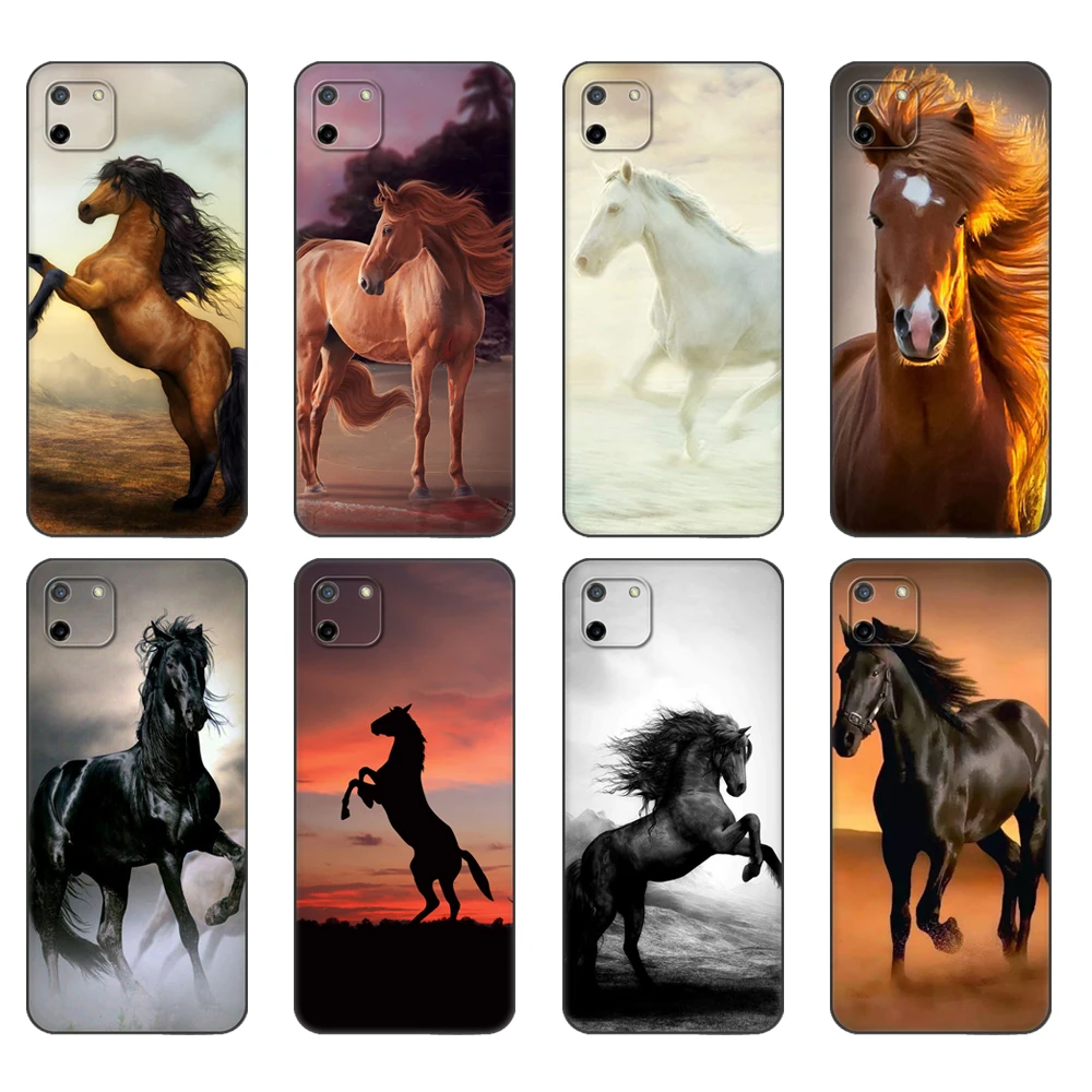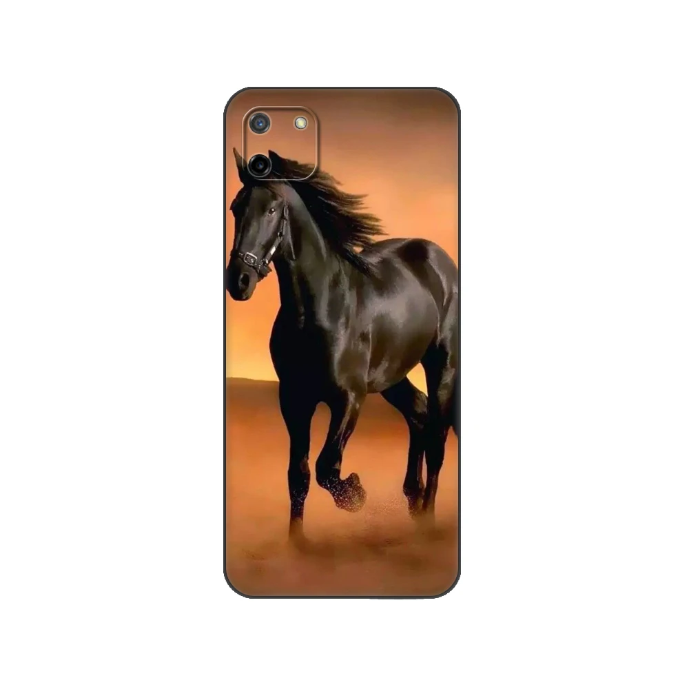 Черный чехол ТПУ Тонкий Высококачественный защитный чехол для OPPO Realme C11 C20 C21 задняя крышка бампера бегущая лошадь животные