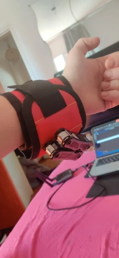 Браслет удобный. Размер 330*85 без хлястика. Магниты круглые, по два в каждом кармане (лучше было бы сделать прямоугольные), но держат сносно. Для мелких работ ( особенно на высоте) очень хорош.