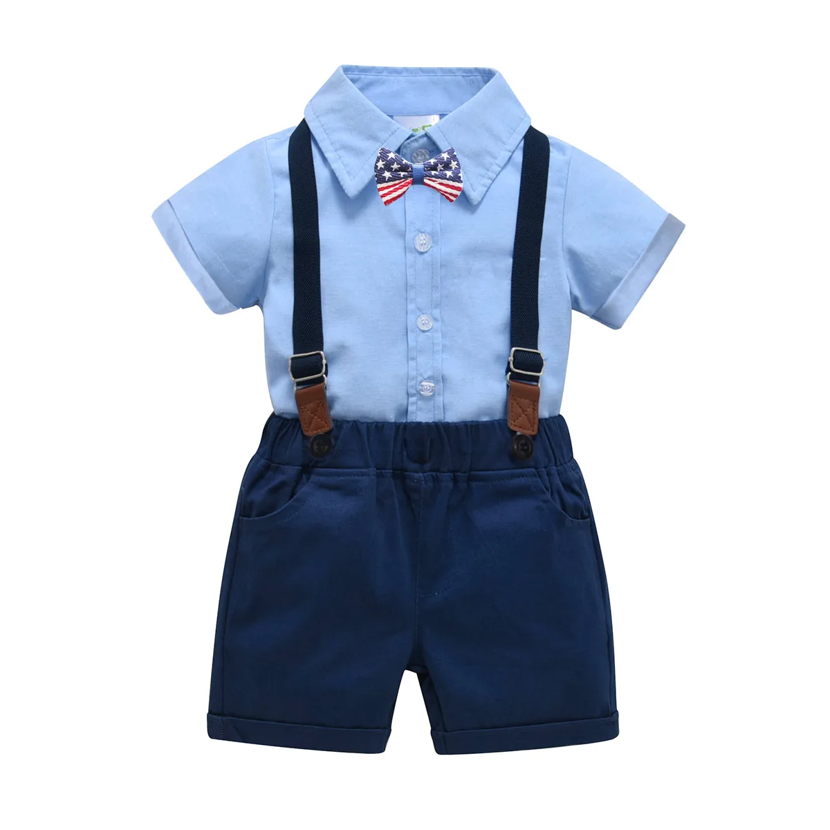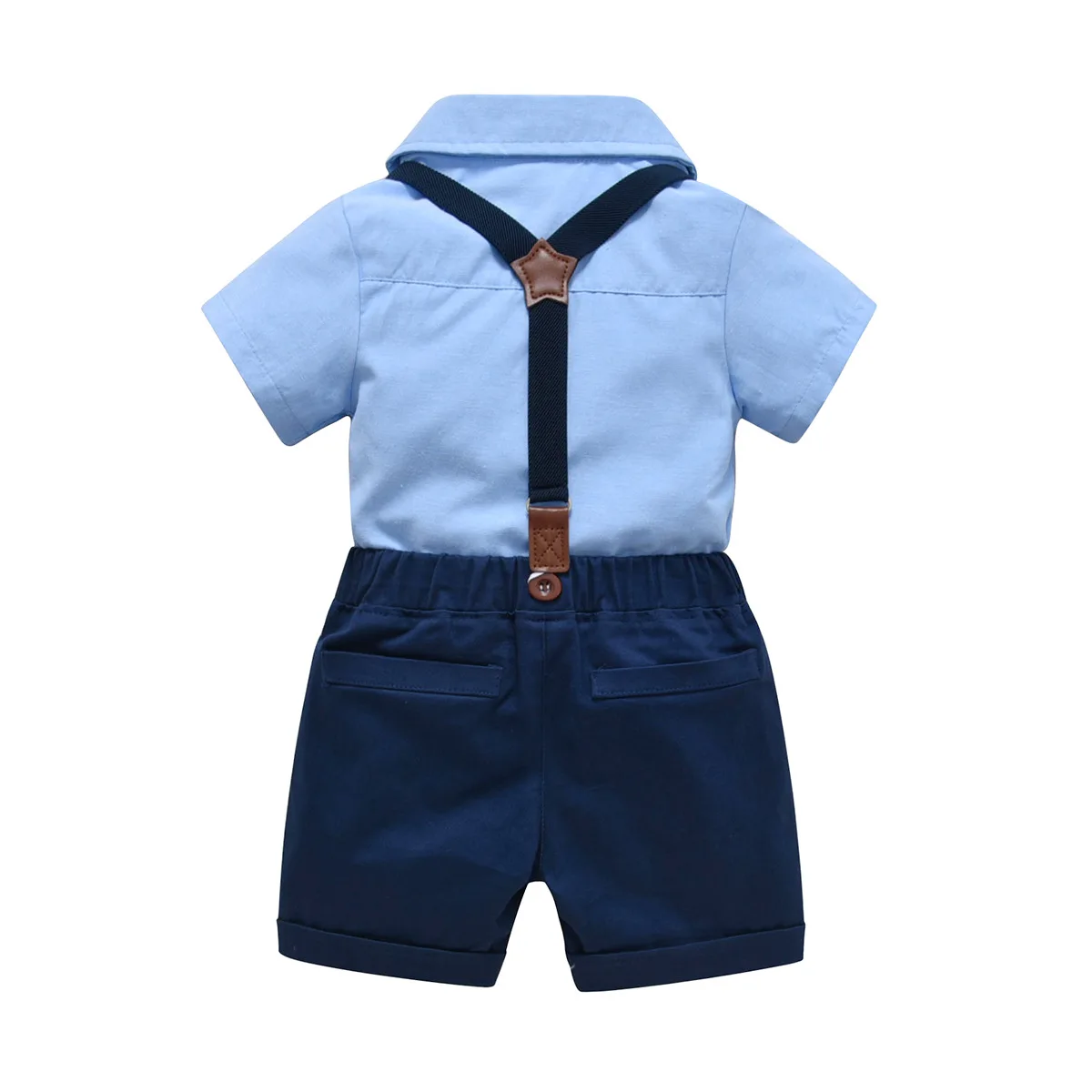 Летний комплект одежды для маленьких мальчиков, одежда для новорожденных, футболка с коротким рукавом из чистого хлопка + подтяжки, джентльменский костюм