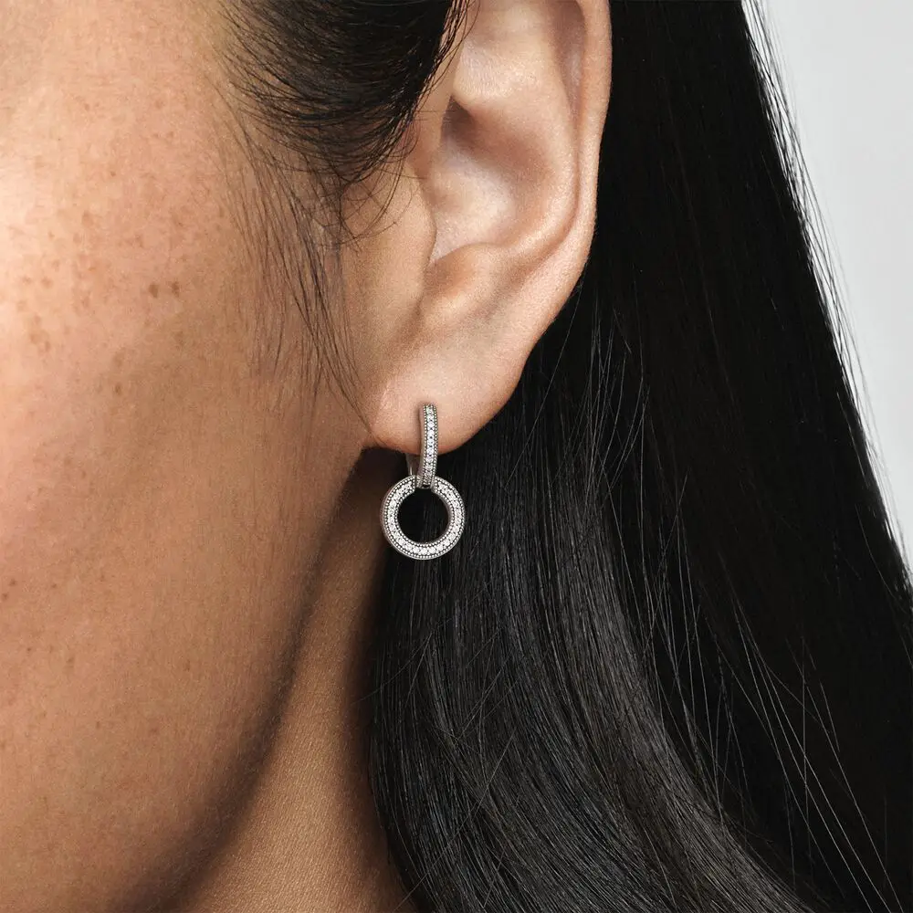 Серьги-подвески женские из серебра 925 пробы, с двойным кольцом