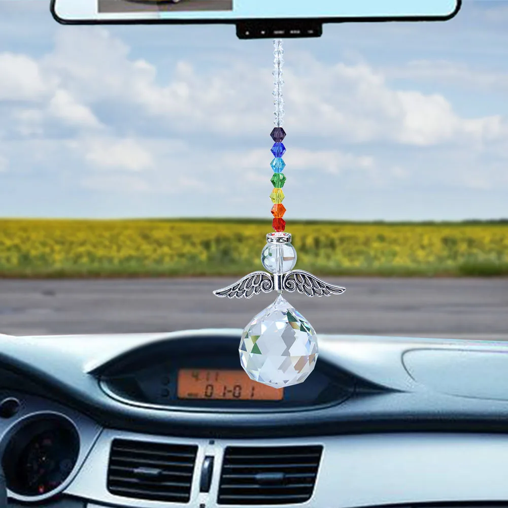 Хрустальные призмы с ангельскими бусинами, подвесные радужные приспособления для освещения, аксессуары для окон, шторы, подвески для дома, сада, автомобиля