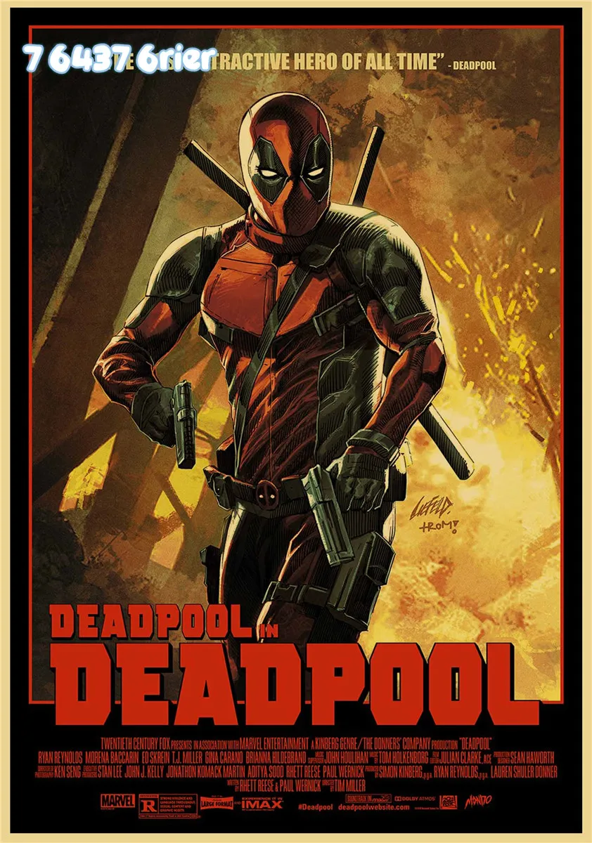 Дэдпул супергероев Marvel классический обложка фильма крафт Бумага плакат ретро Стиль Семья стены Гостиная, ручной стержень, для кафе, для стены Стикеры A207