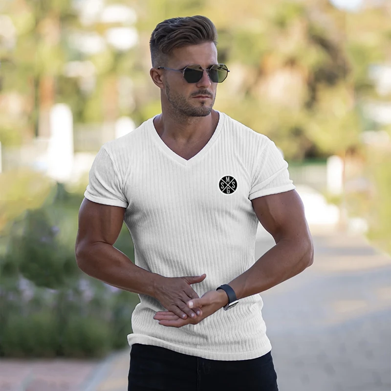 Футболка мужская Трикотажная с V-образным вырезом и коротким рукавом