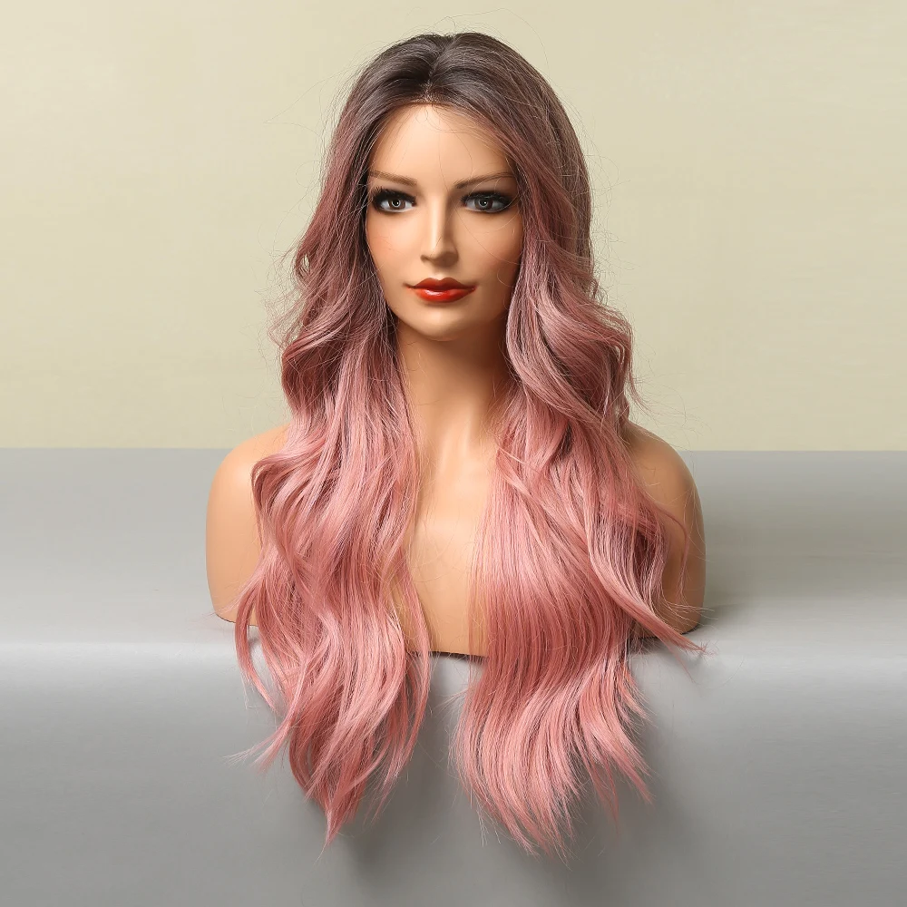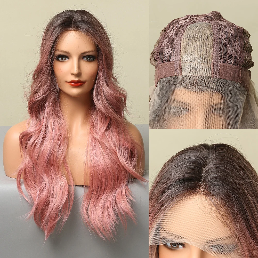 GEMMA длинные волнистые синтетические кружевные парики Омбре черные розовые кружевные передние парики для женщин натуральные средней части косплей повседневные Лолита волосы