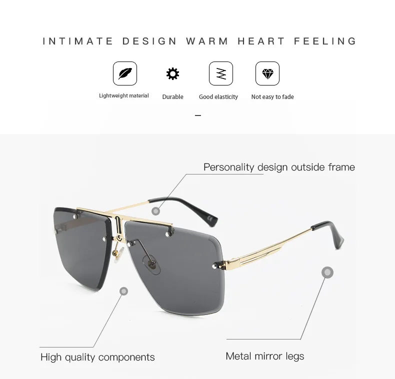 2021 модные квадратные солнцезащитные очки без оправы винтажные брендовые Дизайнерские мужские солнцезащитные очки Роскошные мужские солнцезащитные очки UV400 оттенки gafas de sol