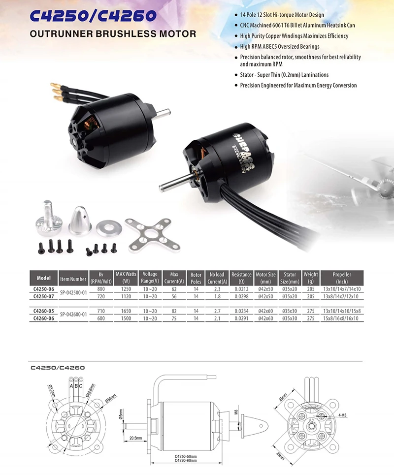 Surpass Hobby бесщеточный мотор C4250 C4260 C5045 C5055 C5065 C6354 14 Полюс wAcc для БПЛА, самолет RC Multicopters радиоуправляемый самолет вертолет