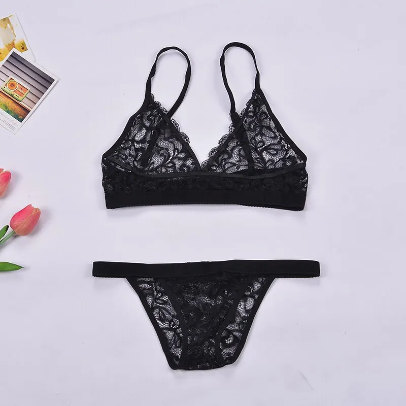 Комплект женского кружевного нижнего белья, пикантный прозрачный бюстгальтер с вышивкой, стринги