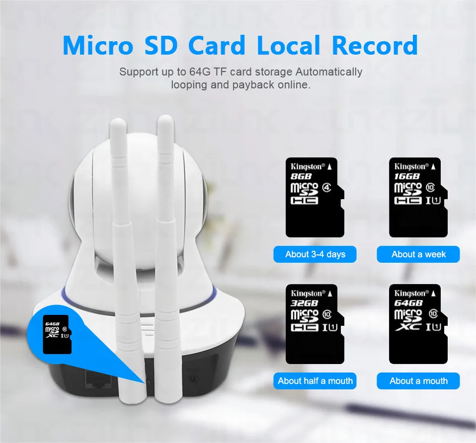 • Поддержка облачного сервиса, проникновения в сеть, информации о тревоге, нажатия на телефон и т. Д.