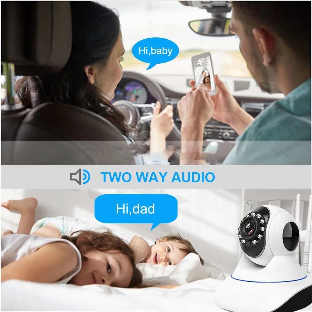 Встроенный микрофон и динамик приносят вам двусторонний звук в режиме реального времени. Выберите приложение для прослушивания/разговора через смартфон, начните общаться с семьей в любое время в любом месте