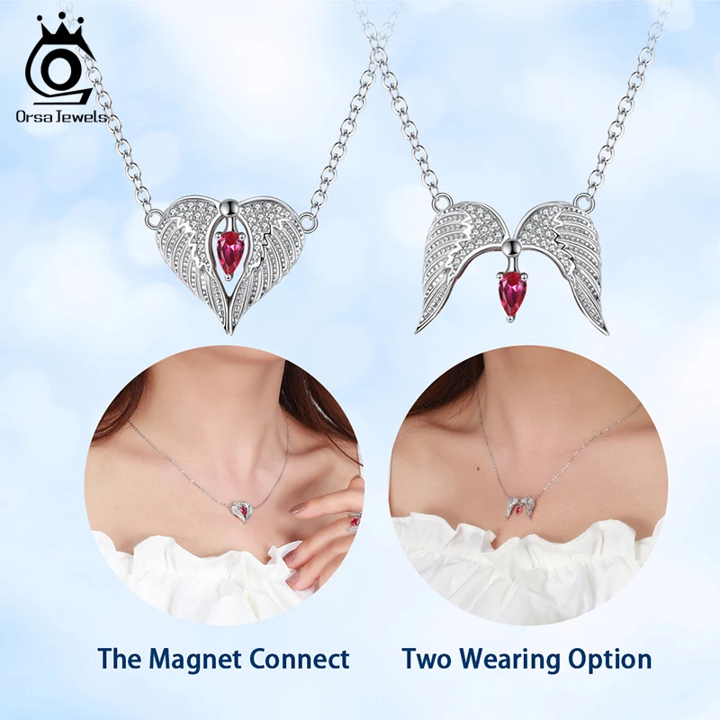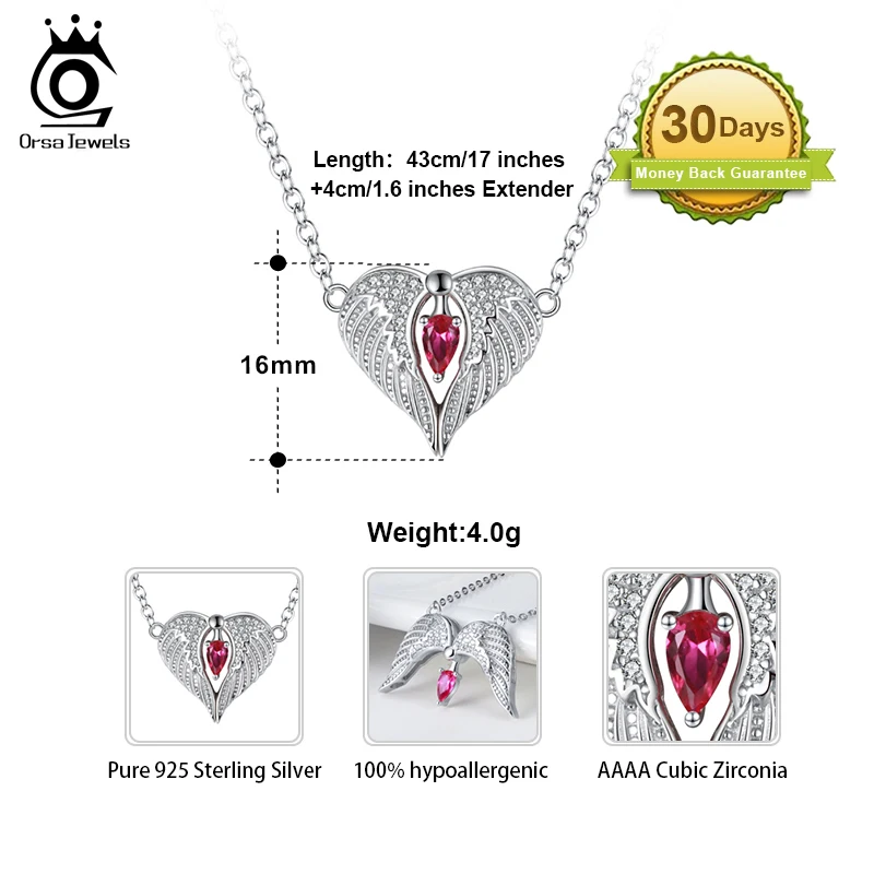 ORSA JEWELS подвижное складное и открывающееся ожерелье в форме крыльев Ангела сердце из родия, ожерелье из стерлингового серебра с кубическим цирконием SN292