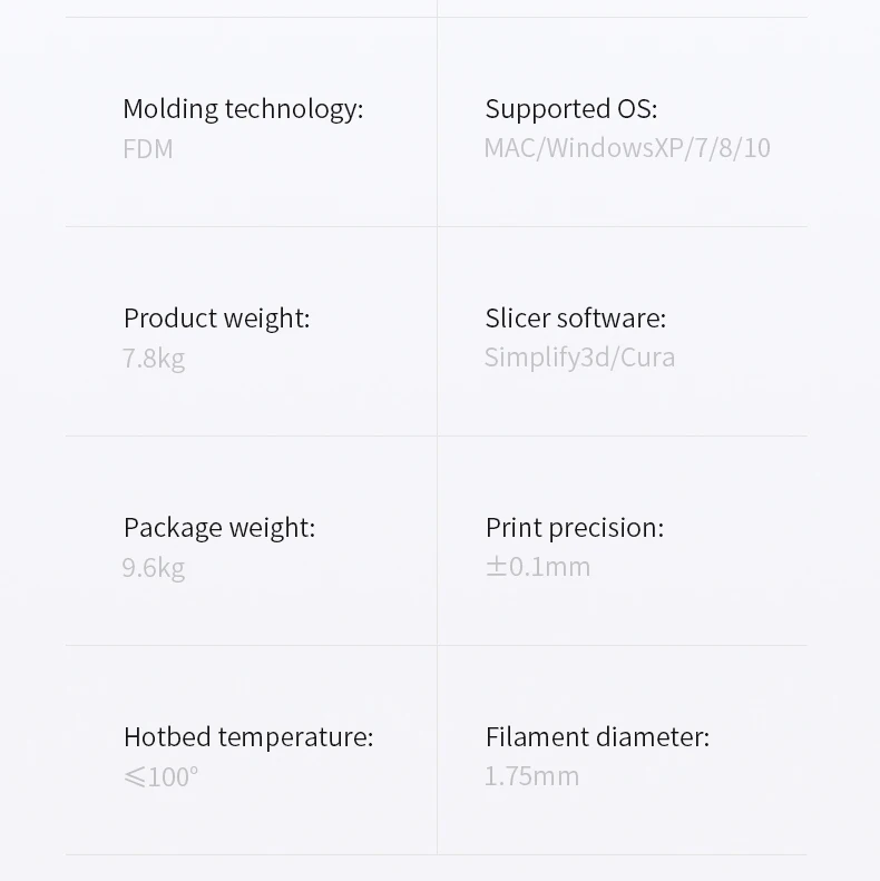 Сопло Диаметр: Стандартный 0,4 мм (может быть изменен на 0,3/0,2 мм)