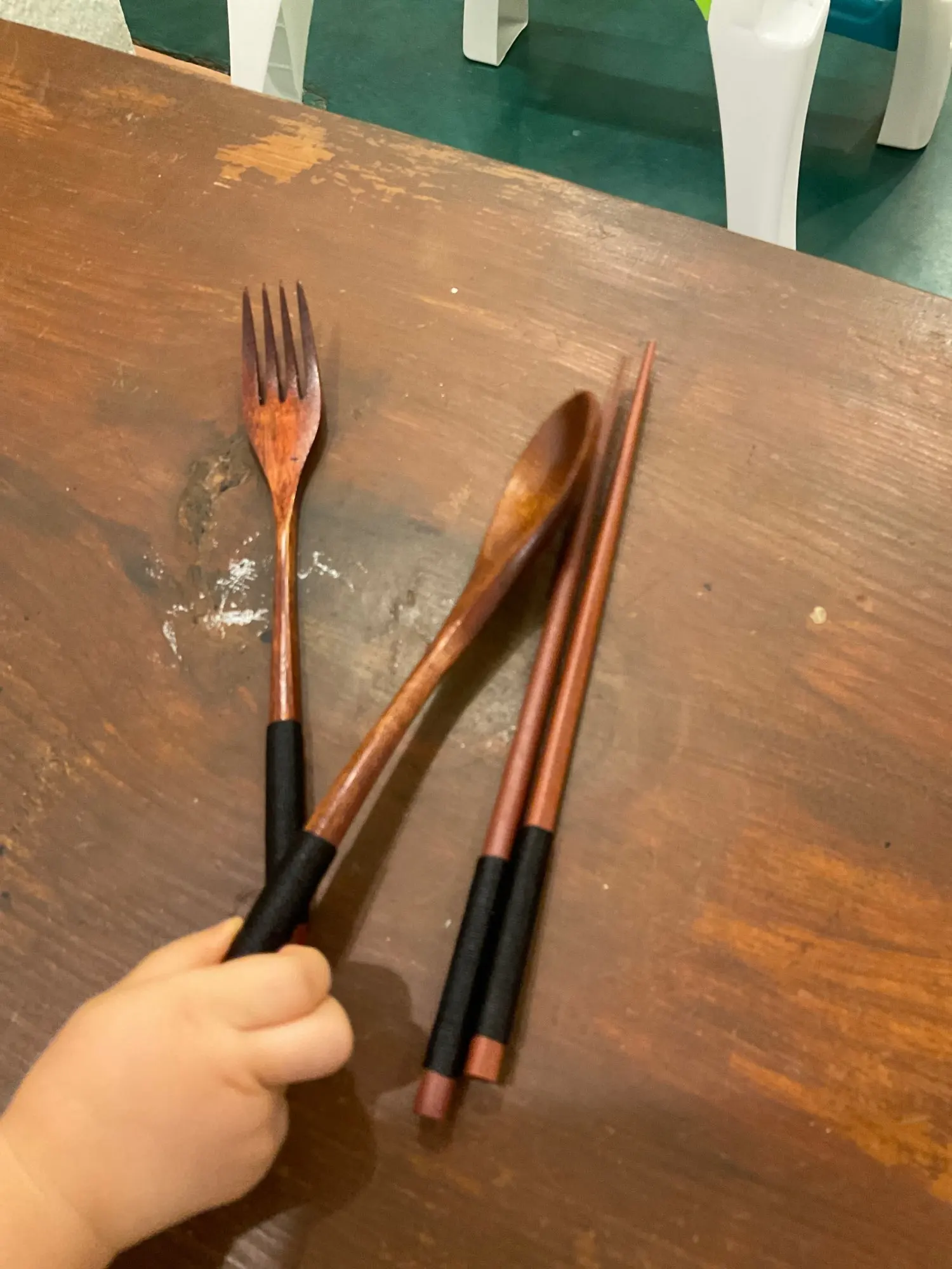 Натуральное дерево из 3 предметов посуда из цельного дерева ложки с длинной ручкой ложка палочки вилка Портативный ручной бытовой посуда с нескользящей подошвой