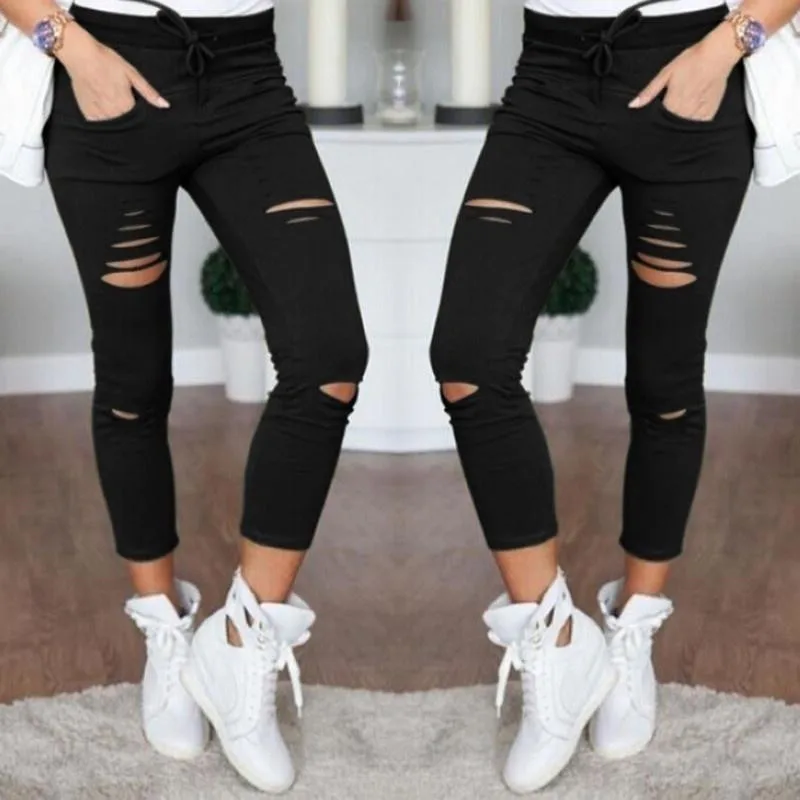Новые рваные джинсы для женщин, женские повседневные рваные брюки, ...