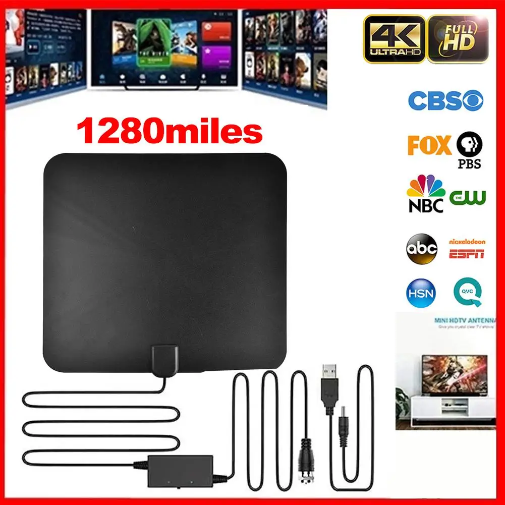 Цифровая ТВ-антенна HD 1080P, радиус 1280 миль, 4K, усилитель для п...