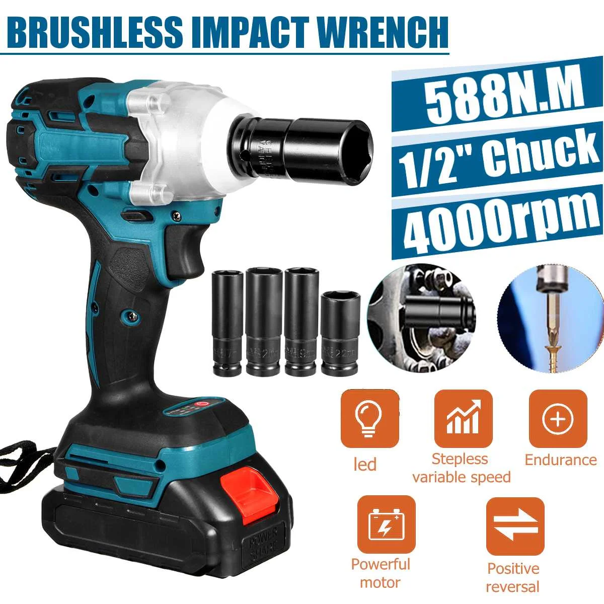 18 в 188VF бесщеточный Электрический ударный гайковерт 12 дюйма литий-ионный Электроинструмент 4000 обмин 588 Н-М крутящий момент для батареи Makita
