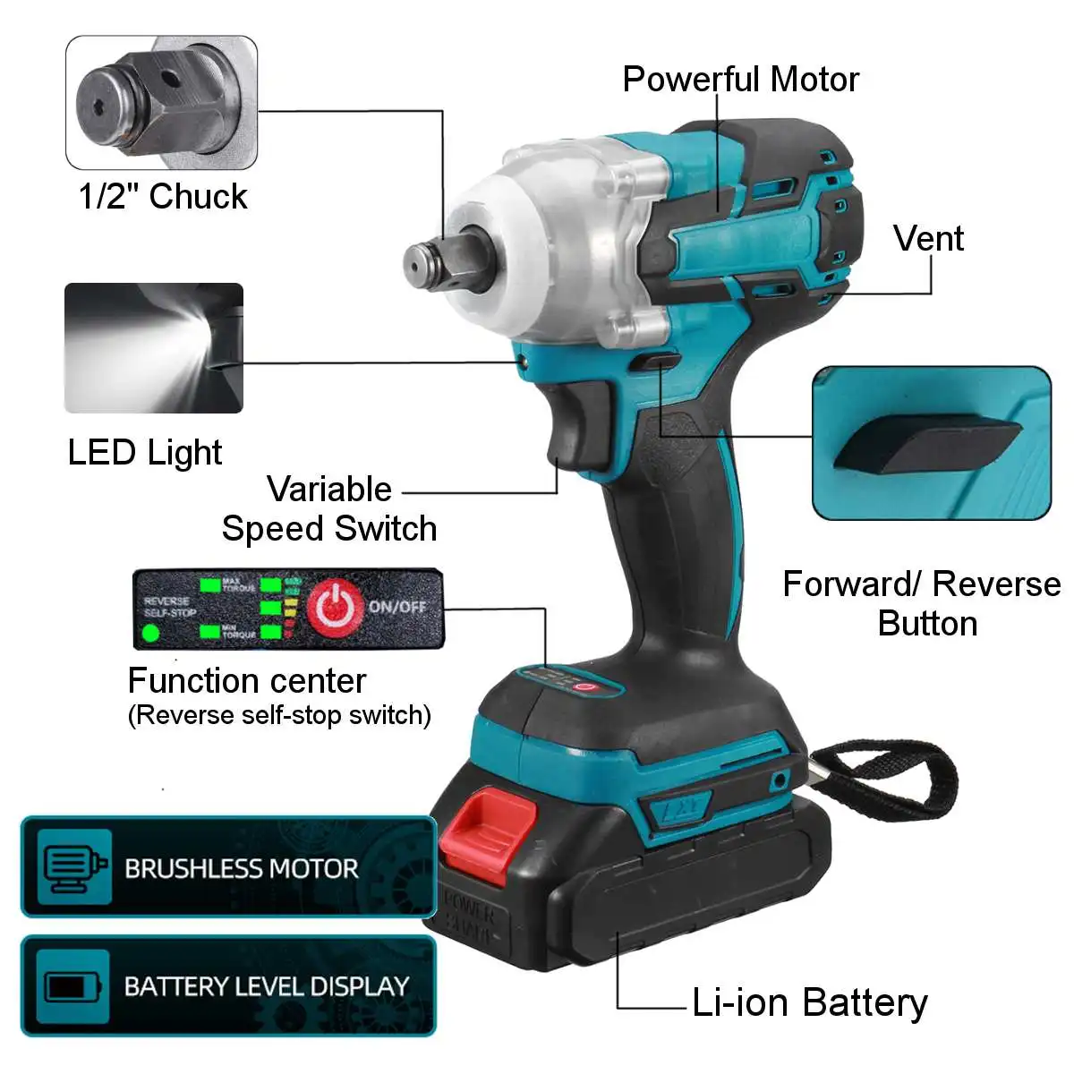 18 в 588N.m. Литий-ионный бесщеточный беспроводной 1/2 ''ударный ключ сменный драйвер для батареи Makita