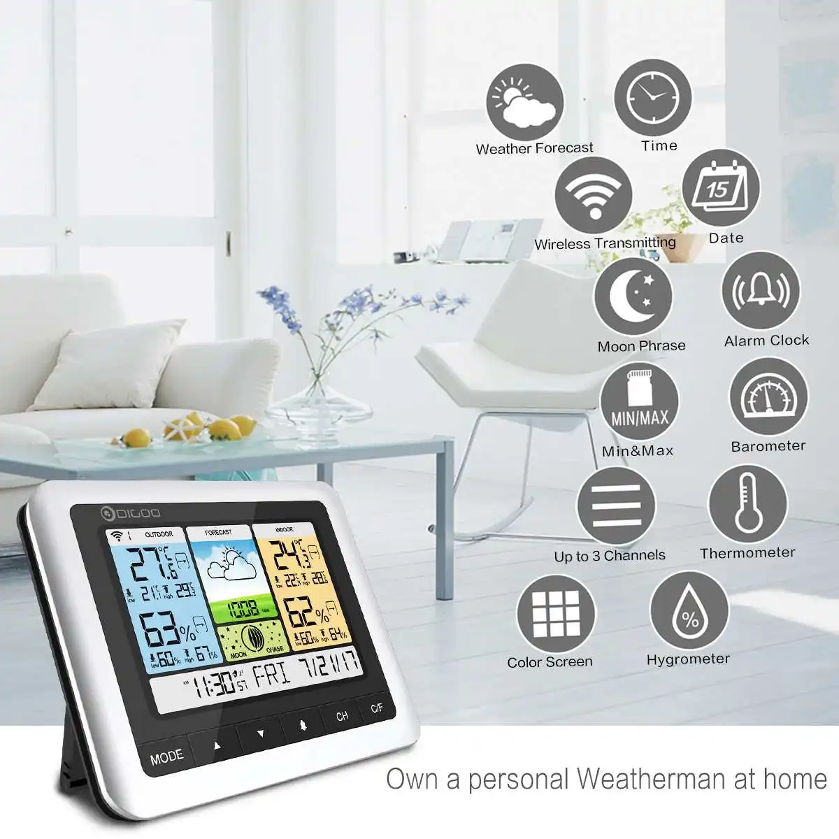 DG-TH8888 ProЦветная беспроводная погодная станция