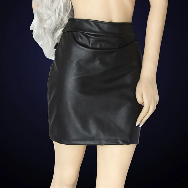 Эластичная Женская мини-юбка из ПУ кожи, с открытой промежностью