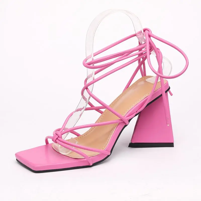 Летние женские босоножки на высоком толстом каблуке со шнуровкой яр...