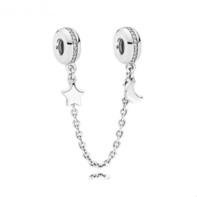 2021 Звезды Луна Любовь Единорог сверкающая безопасная цепочка точные Бусины Подходит для оригинальных шармов Pandora серебряный цвет браслеты женские ювелирные изделия