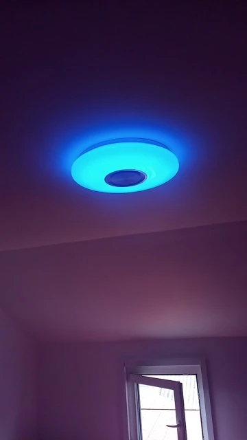 Особенности:Он оснащен мощным динамиком, который воспроизводит музыку через bluetooth-соединение со смартфона. С помощью специально разработанного приложения светильник со смартфона может управлять цветом и яркостью лампы.Мощные светодиоды RGBW могут воспроизводить все спектральные цвета, а также производить белый светильник различной интенсивности и цветовой температуры.По сравнению с обычными светильниками Светодиодный прожектор потребляет минимальное количество электроэнергии и даже ниже энергопотребления, чем энергосберегающие лампы.Характеристики:Диаметр: 39,5*5,8 смРегулировка яркости: ДаВремя зажигания: <1sЦветопередача: 80Содержание ртути: 0 мгЧастота сети: 50 ГцВремя запуска до 60%: 1sСветовой поток: 100 лм/ВтСтепень защиты: IP20Материал абажура: акрилРабочее напряжение: ac220вСветильник: теплый белый + RGBЦветовая температура: 3000K + 4500K + 6000KПрименение:Для спальни, гостиной, конференц-зала, кухни, гостиной, зала, кухни, ванной комнаты, прихожей, лестниц, мастерских и выставок и т. д.Посылка:1X светодиодный потолочный светильник1X пульт дистанционного управления1 комплект деталей