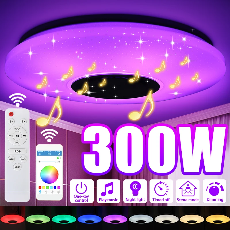 300 Вт 102 светодиодный RGB светодиодный потолочный светильник AC220V работы при прослушивании музыки по bluetooth Динамик лампы дистанционного + APP Управление затемнения современные умный дом вечерние светильник