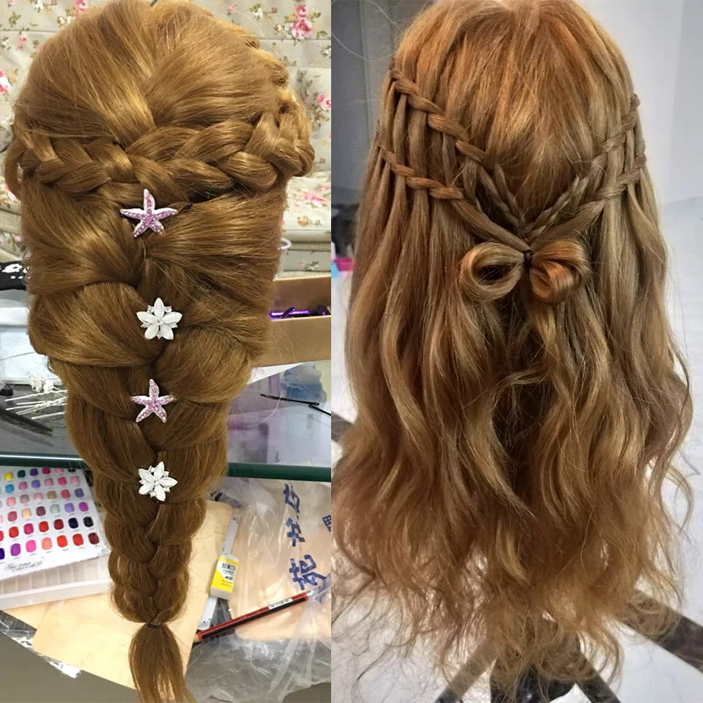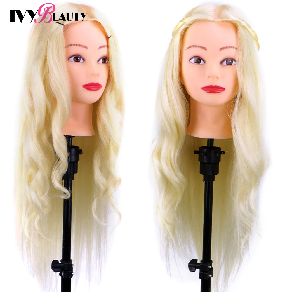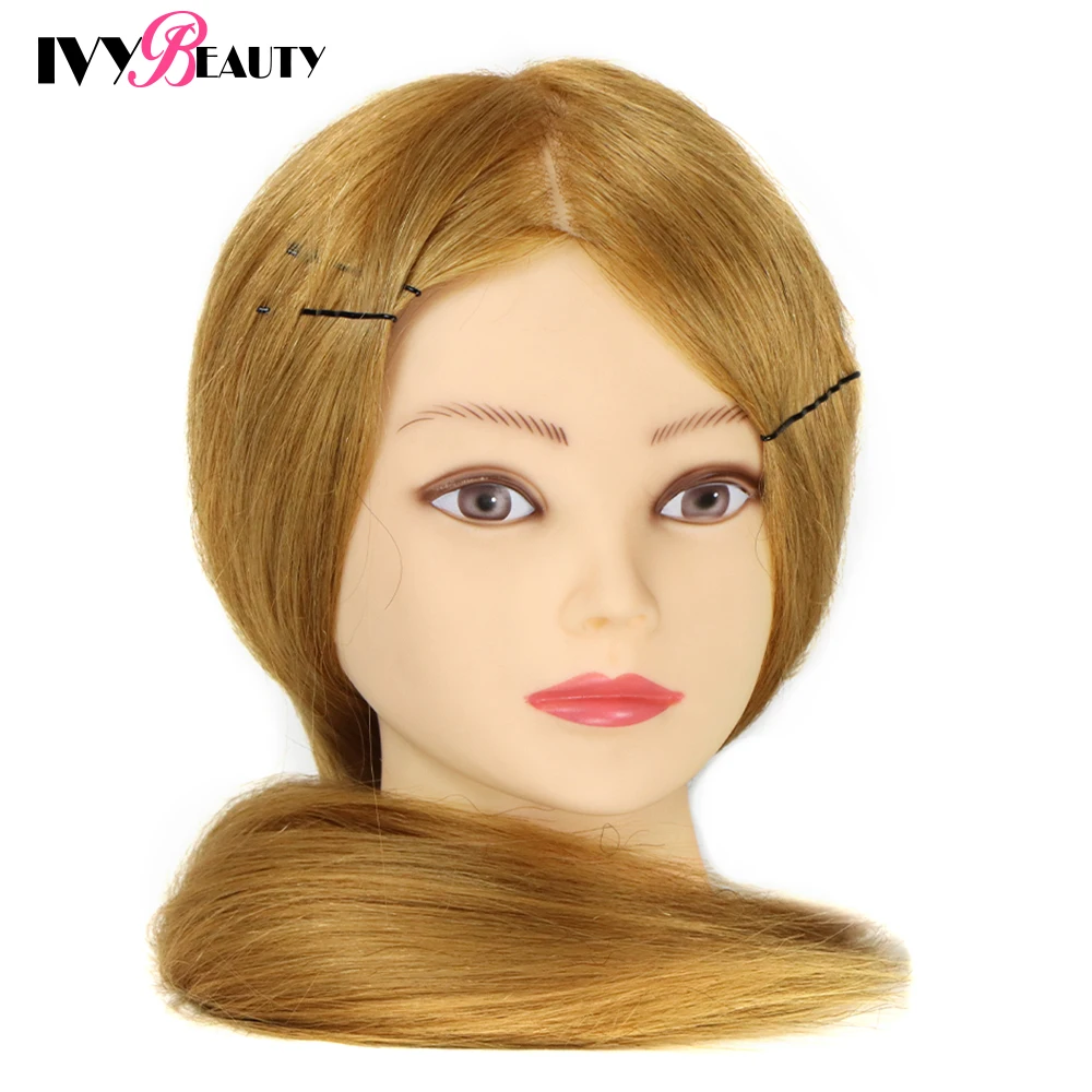 Светлая Голова-манекен со 85% натуральными волосами для причесок, Парикмахерская, Парикмахерская, голова с подставкой для парика