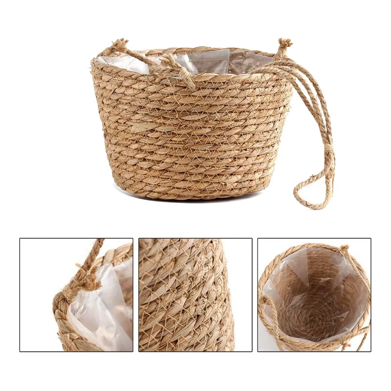 3 шт бамбуковая висячие корзины, кашпо, тканые комнатных наружний цветочный горшок растение вешалка сочные контейнер для горшков домашний декор