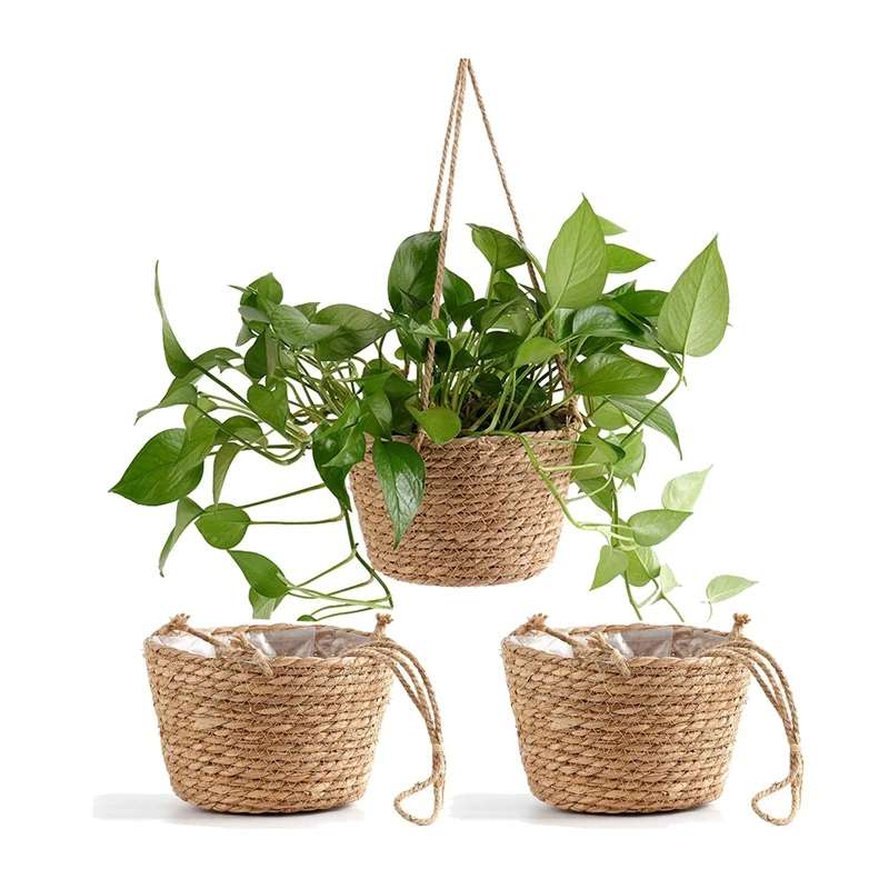 3 шт. висячая корзина для растений, тканый комнатный напольный цветочный горшок, растительная вешалка, суккулентный контейнер для горшков, домашний декор
