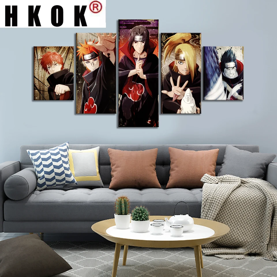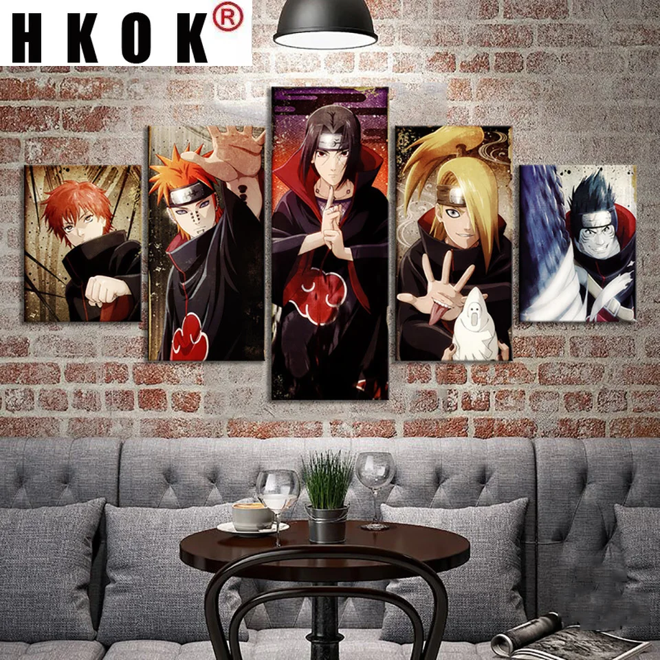 HKOK абстрактные 5 панелей холст картины плакаты принты Akatsuki диван в стиле аниме настенные картины Домашний декор для гостиной